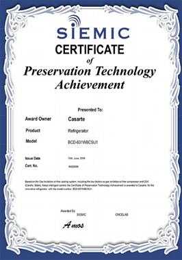 - 美国SIEMIC首次为卡萨帝冰箱发布保鲜技术认证