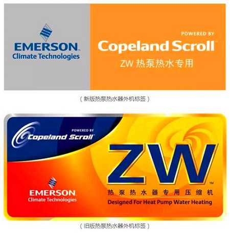艾默生集团为品牌标识添新面貌,新装出发,与伙伴携手共进。ZW系列热泵热水专用压缩机现已启用全新热泵热水器外机标签。即日起,艾默生合作伙伴的热泵产品均会采用新版标签。艾默生助力经济新常态,引领行业新气象!