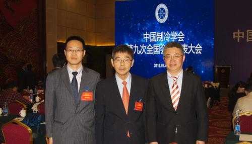中国制冷学会第九届理事会常务理事徐阳先生(图右),中国制冷学会制冷机械设备专业委员会(二专委)理事马海云先生(图左)与中国制冷学会第九届理事会理事长的金嘉玮先生(图中)合影留念