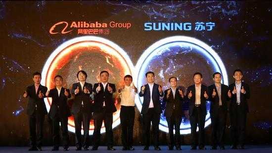 去年8月10日,阿里巴巴集团宣布投资约283亿元参与苏宁云商集团的非公开发行,占发行后总股本的19.99%,成为其第二大股东。同时,苏宁云商以140亿元人民币认购不超过2780万股的阿里巴巴新发行股份。