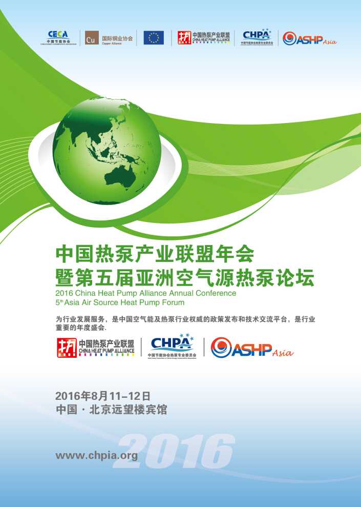8月11-12日,由中国节能协会和国际铜业协会主办、中国热泵产业联盟和中国节能协会热泵专业委员会承办的2016中国热泵产业联盟年会暨第五届亚洲空气源热泵论坛将在北京远望楼宾馆4楼会议厅举行。艾默生环境优化技术将受邀作为银牌赞助商出席本次年会。