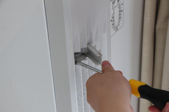我们这款立式空调的外盖是用螺丝固定的(很多空调外盖是采取卡扣式安装,只需要向上一提就可以取下外盖),先打开左右两侧的的螺丝盖,拧下螺丝,然后稍一用力就可以取下外盖。