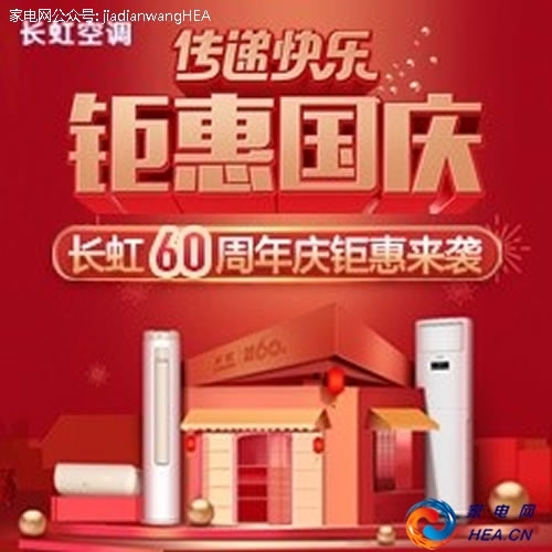 家电网-HEA.CN报道:此外,长虹空调还同时与天猫、京东、苏宁易购在各个线上平台进行“传递快乐钜惠国庆“活动。献礼长虹建业60周年为长虹集团疯狂打CALL。