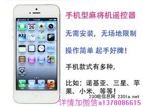 - 经营范围:单口可控制麻將机遥控器咨询热线13917679078客服qq1423855983微信a1378086615网址http://baidu1688.b2b110.com/ 欢迎全国各地的朋友试用免安装麻将机遥控器。购买本公司的所有产品均支持先试用,满意后再付款。 免安装麻将机控制器无需安装,也不需要在麻将机里面动任何的手脚,适用于各品牌的普通麻将机以及全国各地不同的玩法规则。遥 控器内置的芯片加载了所有麻将机类型的洗牌程序和控制程序。您只需要简单按一下象打火机大小的遥控器,通过强磁电波破解麻将机内