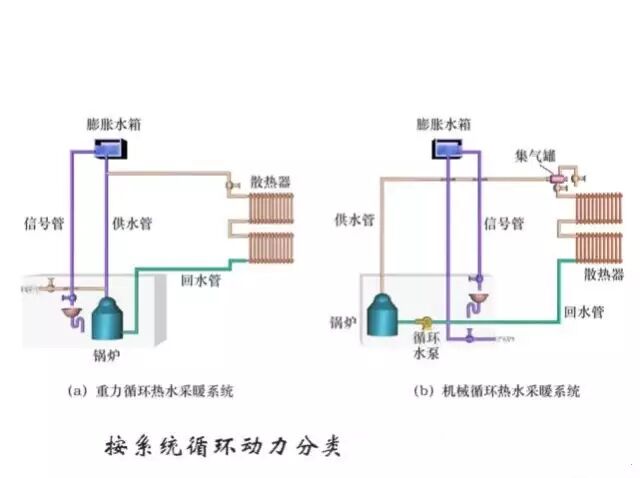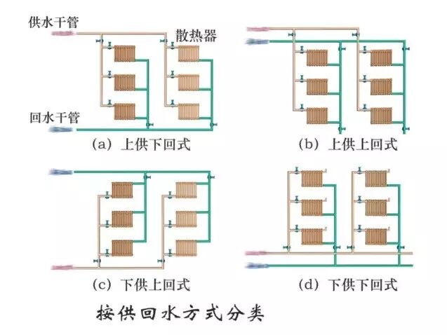 2.按供、回水方式的不同,可分为单管系统和双管系统。