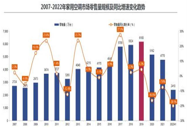 2022年对于空调行业来说是极有挑战的一年,近几年来看,传统的大小年概念消失,销量经历连续三年下滑,企业随着行业爆发力水